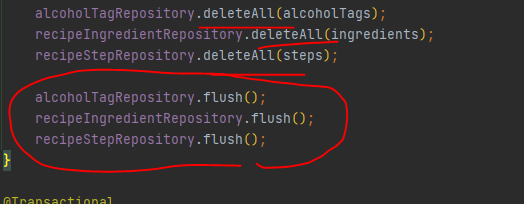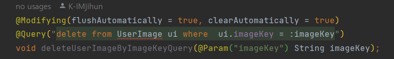 그래서 선택한 방법은 delete 구문에 Modifying 어노테이션을 사용하여 삭제가 진행됨과 동시에