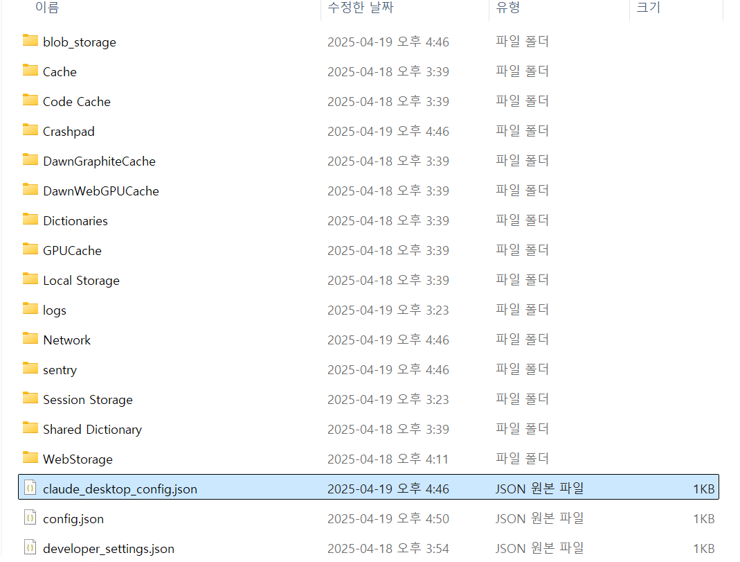 6. 폴더가 열리며 claude_desktop_config.json 파일이 클릭되어 있을텐데, 해당 파일을 실행