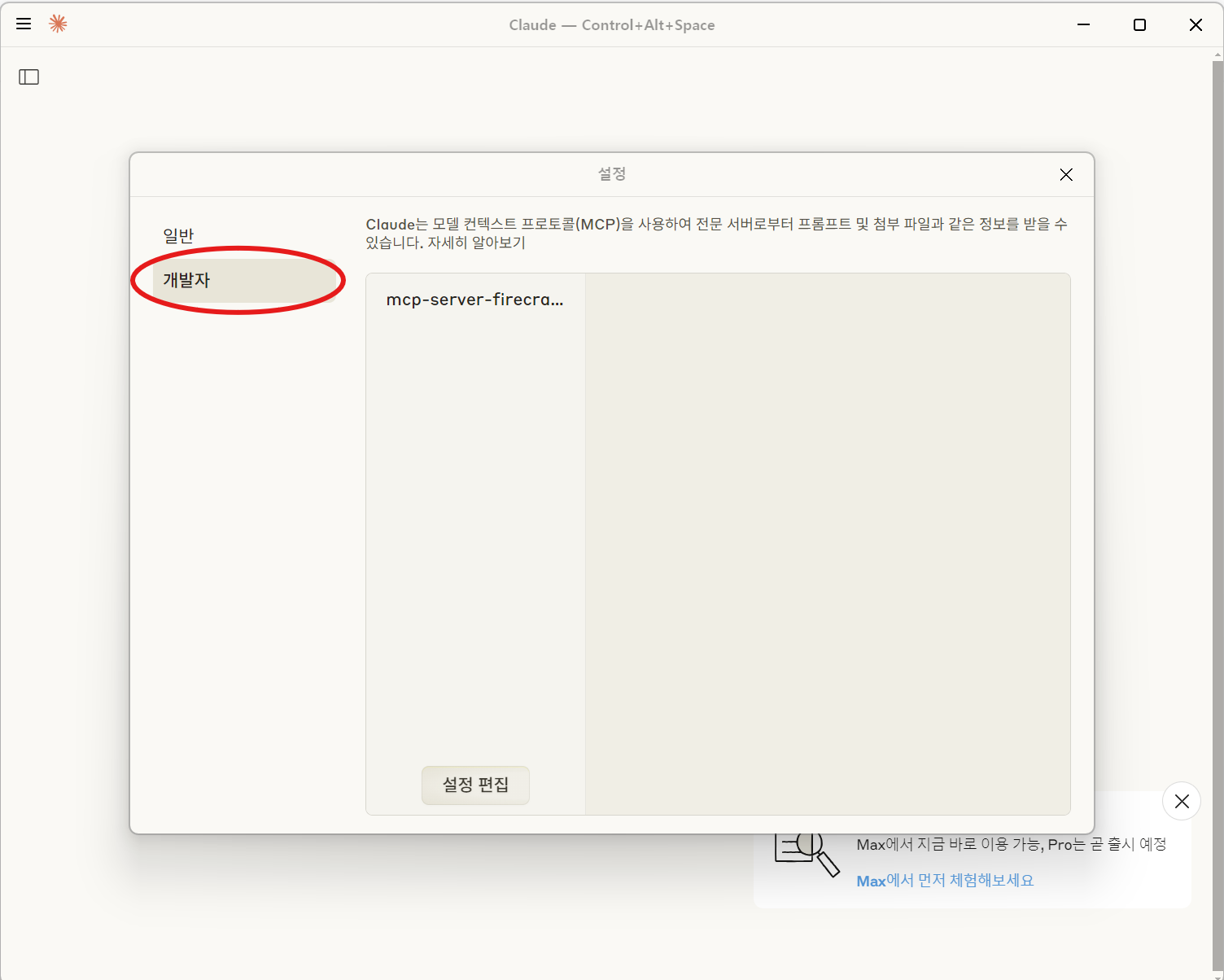 5. 개발자 버튼 클릭 후, 설정 편집 클릭(화면이 조금 다를 수 있음)
