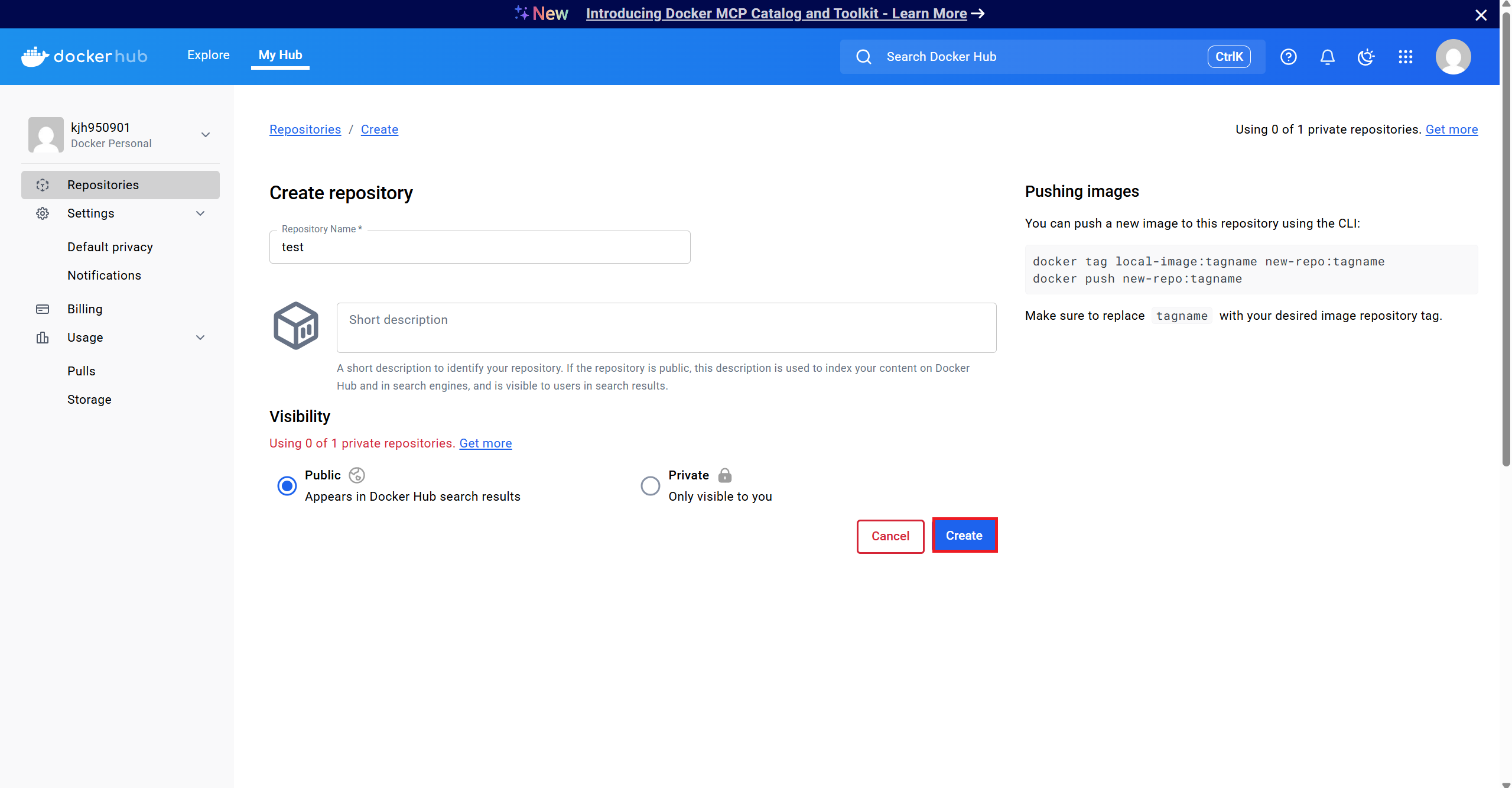 13. docker push kjh950901/test:v1
