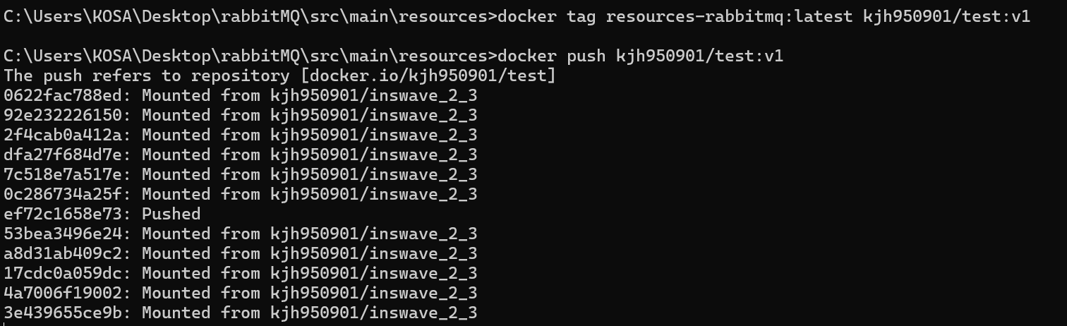 12. docker tag resources-rabbitmq:latest {유저명}/{레포지토리명}:{태그명}