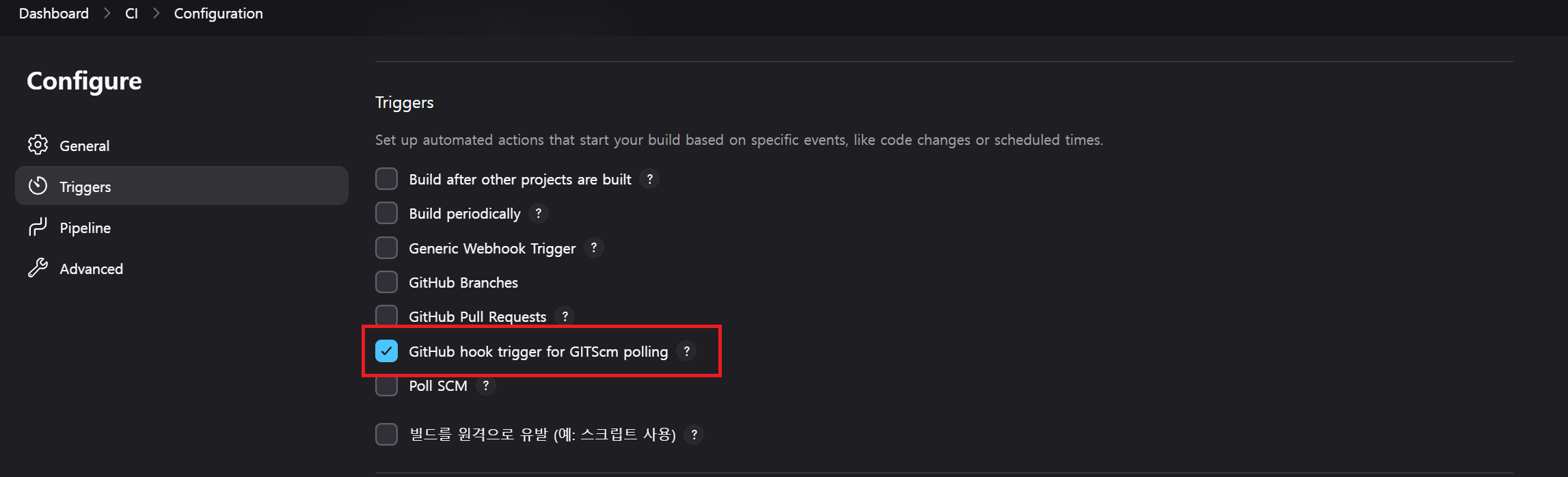 CI를 위한 pipeline 구성