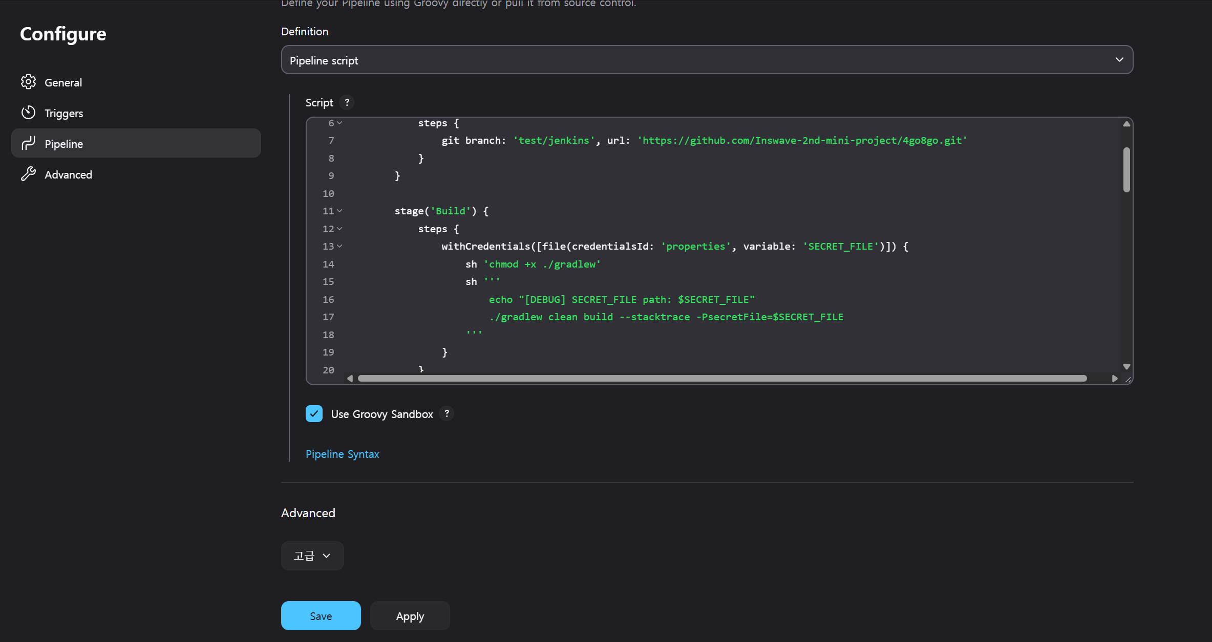 이러한 Pipeline의 장단점으로 인해 pipeline을 사용해 CI/CD 를 구현하기로 하였다.