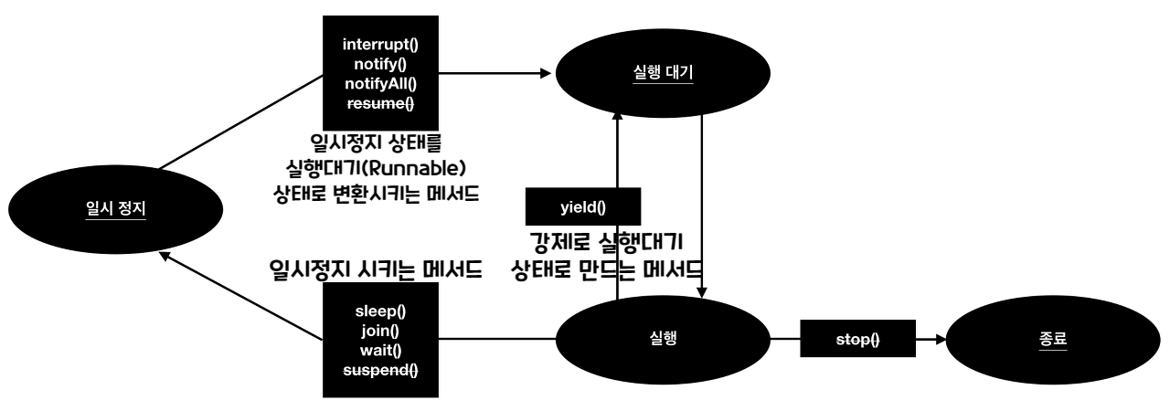 - interrupt()는 일시정지 상태인 쓰레드를 실행대기 상태로 만든다.